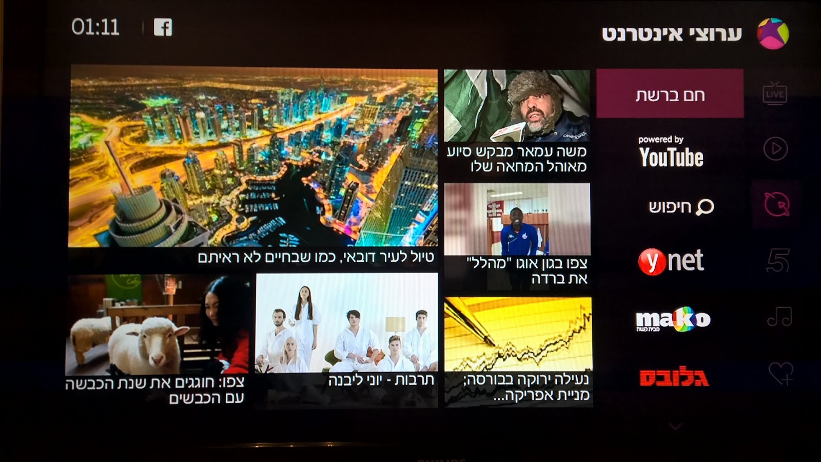 הלאה בתפריטים. בתפריט "ערוצי אינטרנט" תוכלו למצוא סרטונים נבחרים