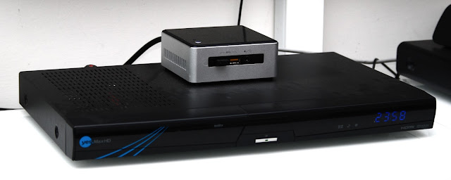 | Intel NUC על ממיר של YES, בקופסה הקטנה הזאת מסתתר מחשב לכל דבר (צילום: גד גניר) |
