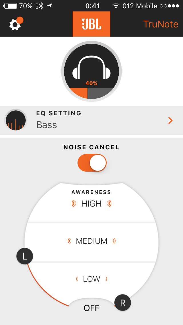 כיאה לאזניות ברמה הזאת, JBL מאפשרת למשתמשים להוריד אפליקציה השולטת על ה-JBL Everest Elite 700. זוהי ללא ספק אחת האפליקציות הטובות מסוגה: בנוסף לדברים הרגילים כמו חיווי מצב סוללה, שליטה על אקולייזר, בדיקת עדכוני קושחה לאזניות וכו', יש כאן שני דברים ייחודיים: TruNote - בלחיצת כפתור האזניות יבצעו קליברציה אוטומטית של הסאונד כדי להתאים אותו לסביבה ולסוג המוזיקה, ו-Ambient Aware - אפשרות שליטה על רמת סינון הרעשים. על TruNote אין לי הרבה מה להרחיב מסיבה פשוטה מאוד: לא הרגשתי שום הבדל בסאונד, לא משנה מתי ואיפה ניסיתי את האפשרות הזאת. את השפעת ה-Ambient Aware דווקא מרגישים היטב, אבל קודם צריך להתרגל לכך שהשליטה היא למעשה הפוכה: במקום לשלוט על עוצמת סינון הרעשים, אתם שולטים על רמת המודעות שלכם למה שקורה בסביבה. במילים אחרות, Ambient Aware במצב High הוא למעשה סינון רעשים ברמה נמוכה. השליטה ב-Ambient Aware אמנם מחולקת לשלוש דרגות, אבל לא חייבים להיצמד דווקא לדרגות האלו, וניתן לשלוט ברמת המודעות שלכם לרעשי הרקע ברזולוציה גבוהה יותר. מעבר לכך, ניתן להגדיר לכל אוזן רמה אחרת של מודעות לסביבה, כך שאם אתם מעוניינים לשמוע פחות את החפרן שיושב לימינכם, אבל לא רוצים לפספס את מה שיש לזה שמשמאלכם להגיד, זו גם אפשרות. באופן כללי סינון הרעשים עובד כאן מצוין. כששומעים מוזיקה ממילא קשה לשמוע רעשי רקע, אך ברגעי שקט בשירים, או כשסתם בא לכם להתנתק מהסביבה, ה-JBL Everest Elite 700 מבטלות את רוב הרעשים בסביבתכם, או לפחות מנמיכות אותם משמעותית. האזניות האלו עושות גם עבודה מצויינת במניעת זליגת המוזיקה החוצה, ובניגוד ל-Audio Technica ATH ANC9, הסובבים אתכם לא ישמעו את המוזיקה שאתם שומעים.