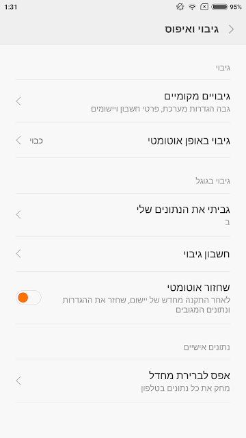 | צילומי מסך מתוך MIUI, תרגום רשלני משהו של הממשק |