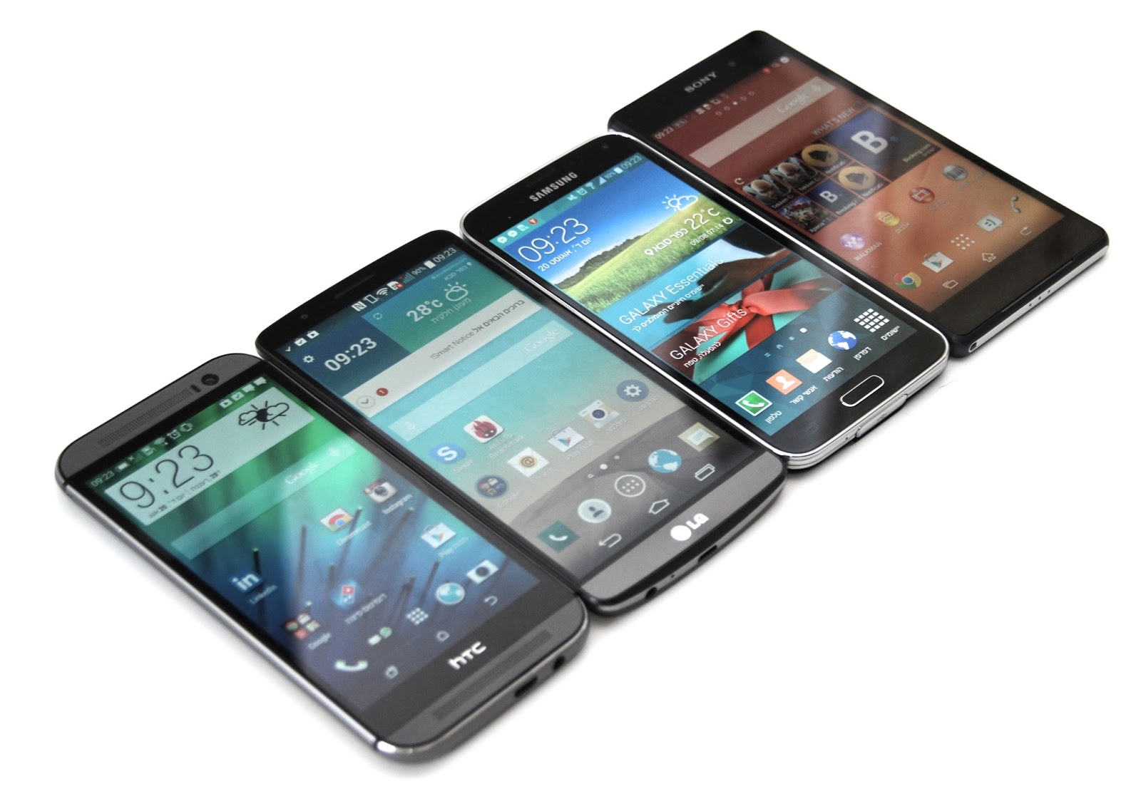 | HTC One M8, LG G3, Samsung Galaxy S5, Sony xperia Z2 (צילום: גד גניר) |